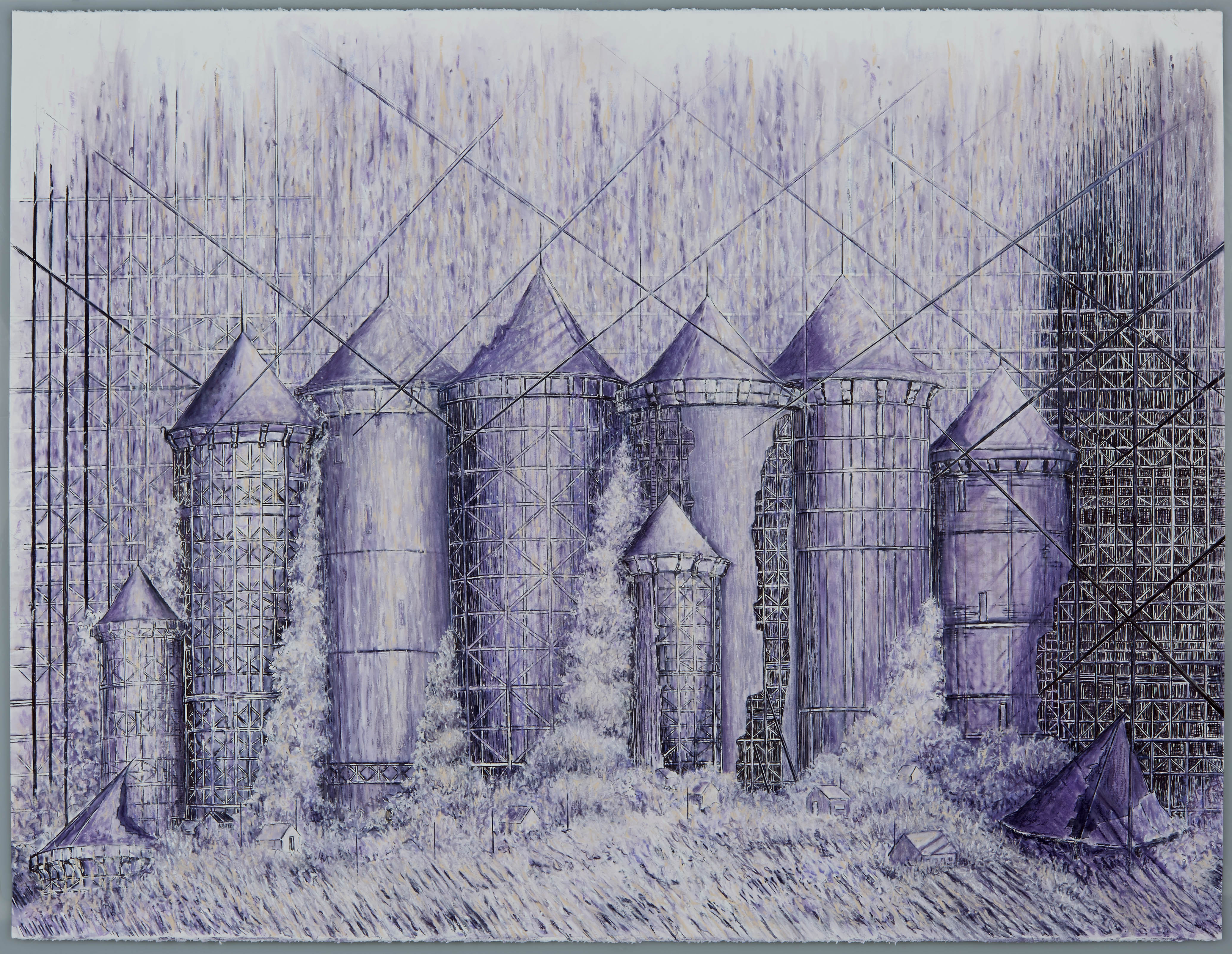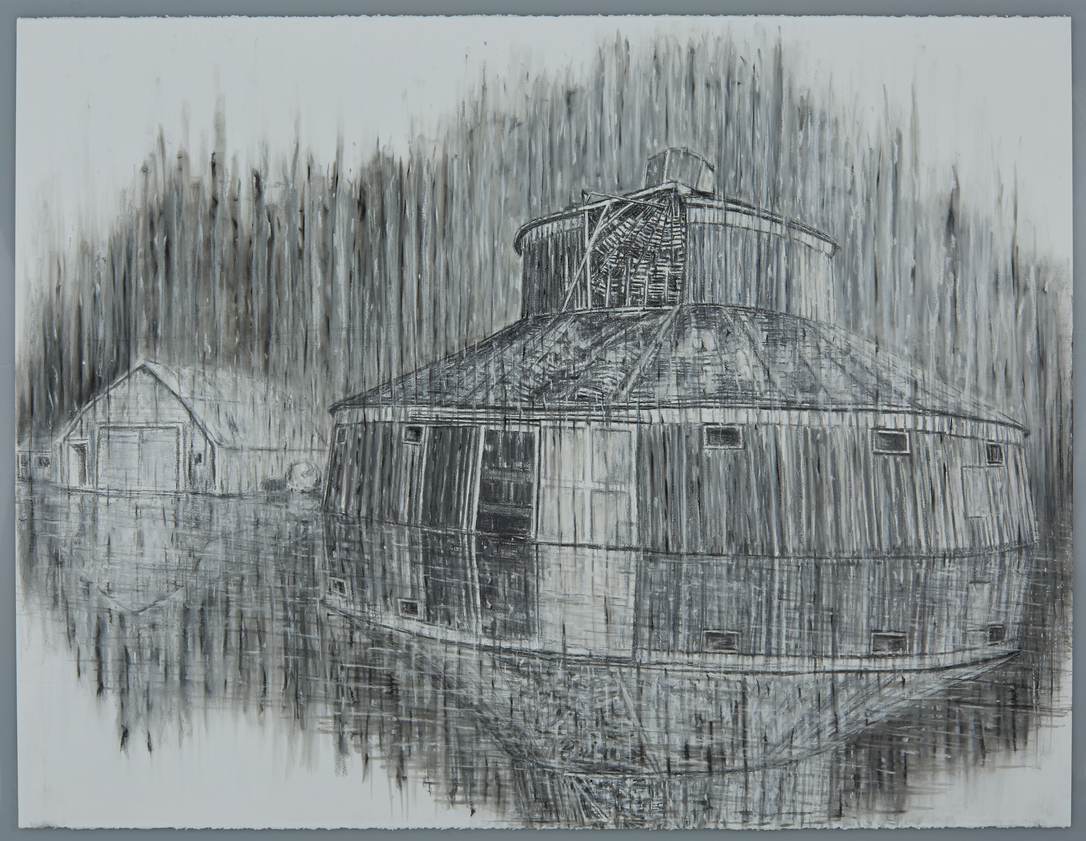 These large-scale drawings depict prairie architecture built to settle the west during the 20th Century immigration boom, now mostly in ruins.