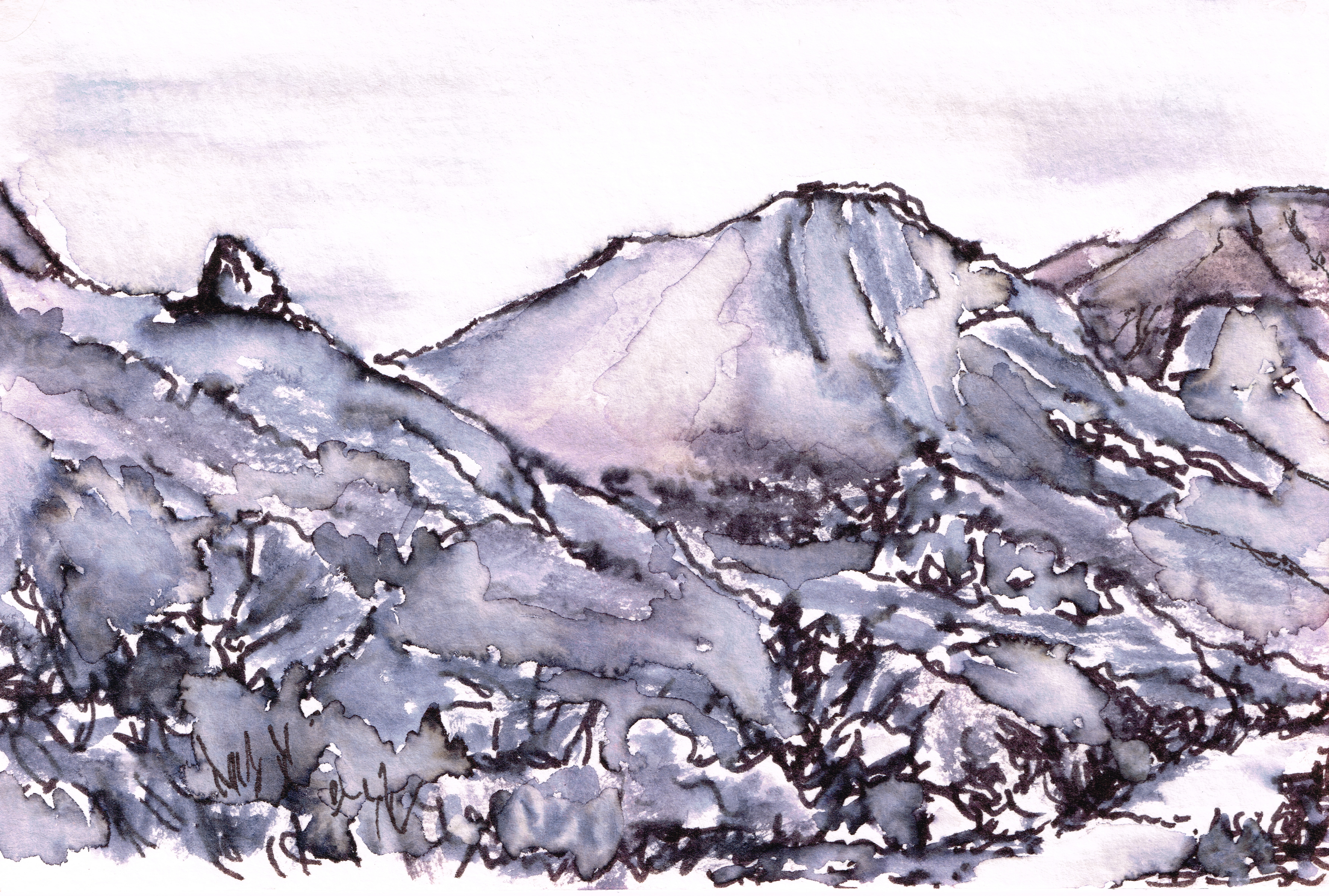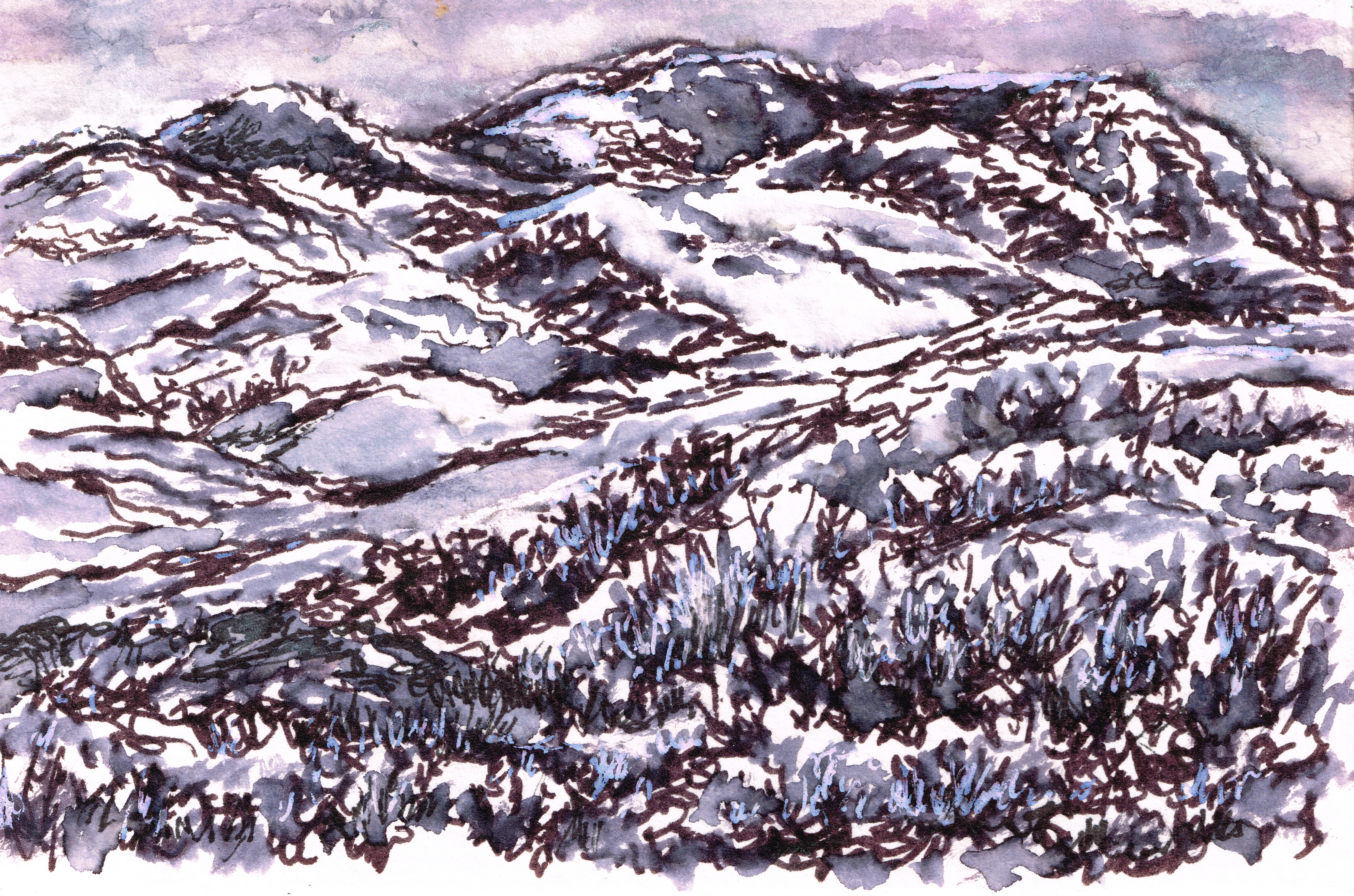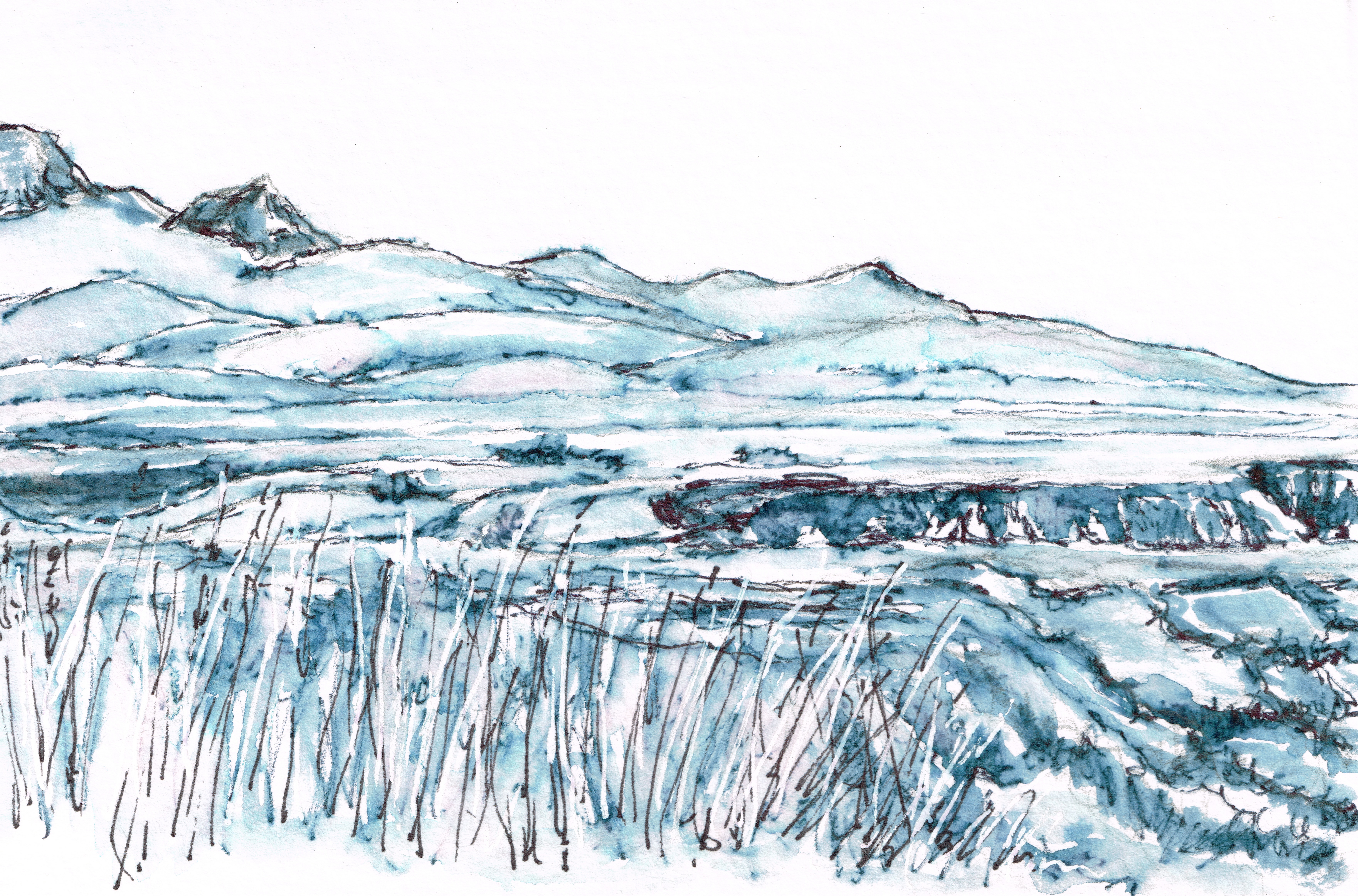 I drew numerous small sketches while taking daily walks in Grasslands National Park. This was an exercise in understanding the land and my relationship to it. Through the act of walking, I found much needed tranquillity and I meditated.